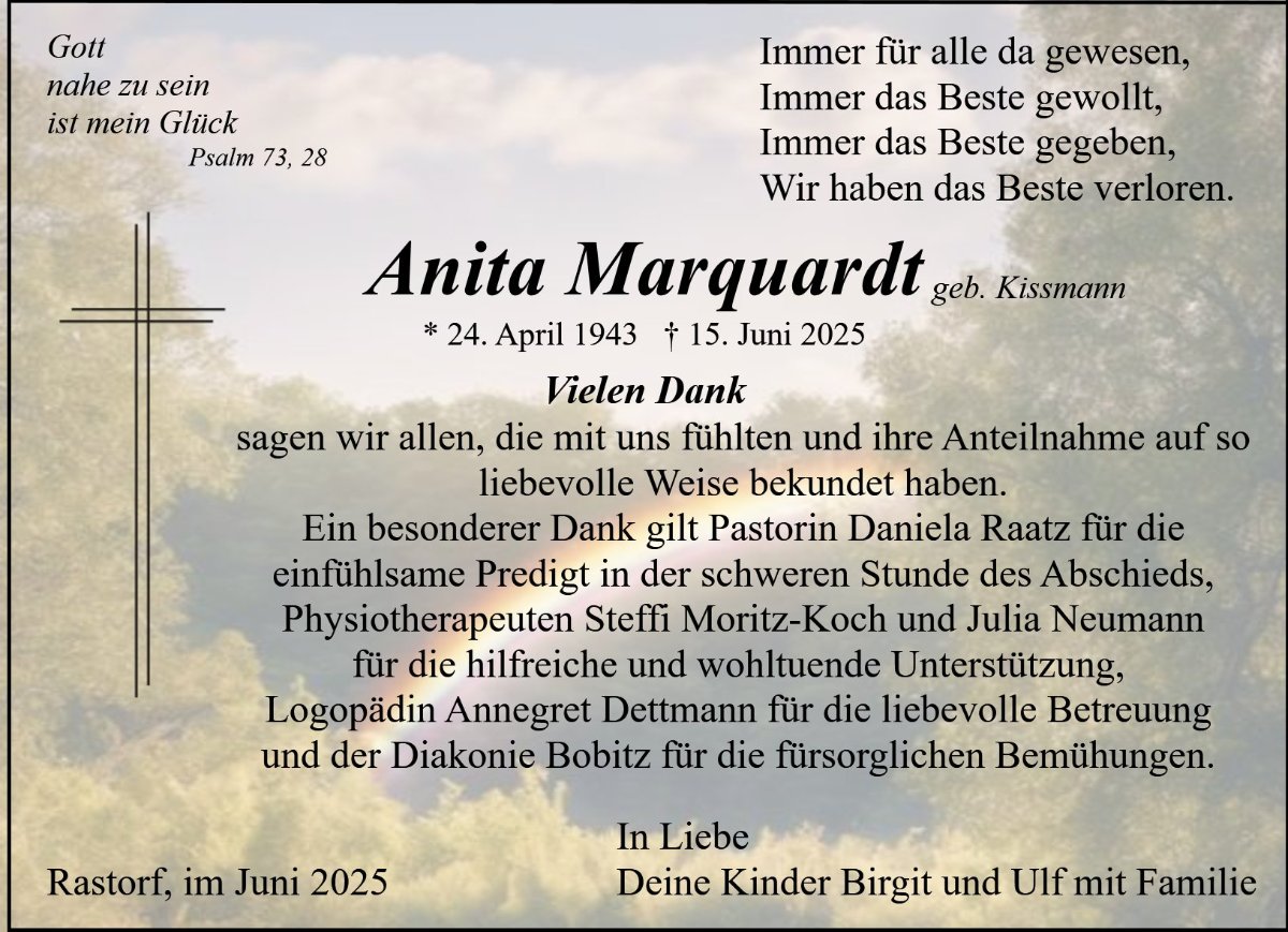 gestorben am 15. Juni 2025 in Bobitz OT Rastorf