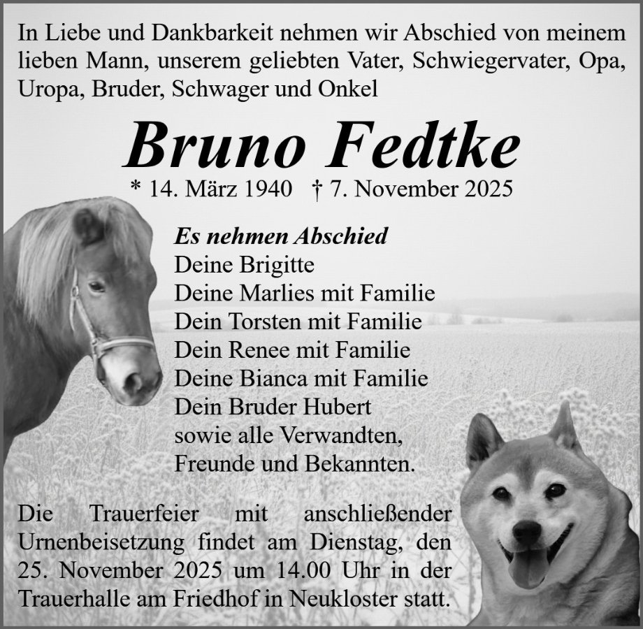 Bruno Fedtkegestorben am 7. November 2025