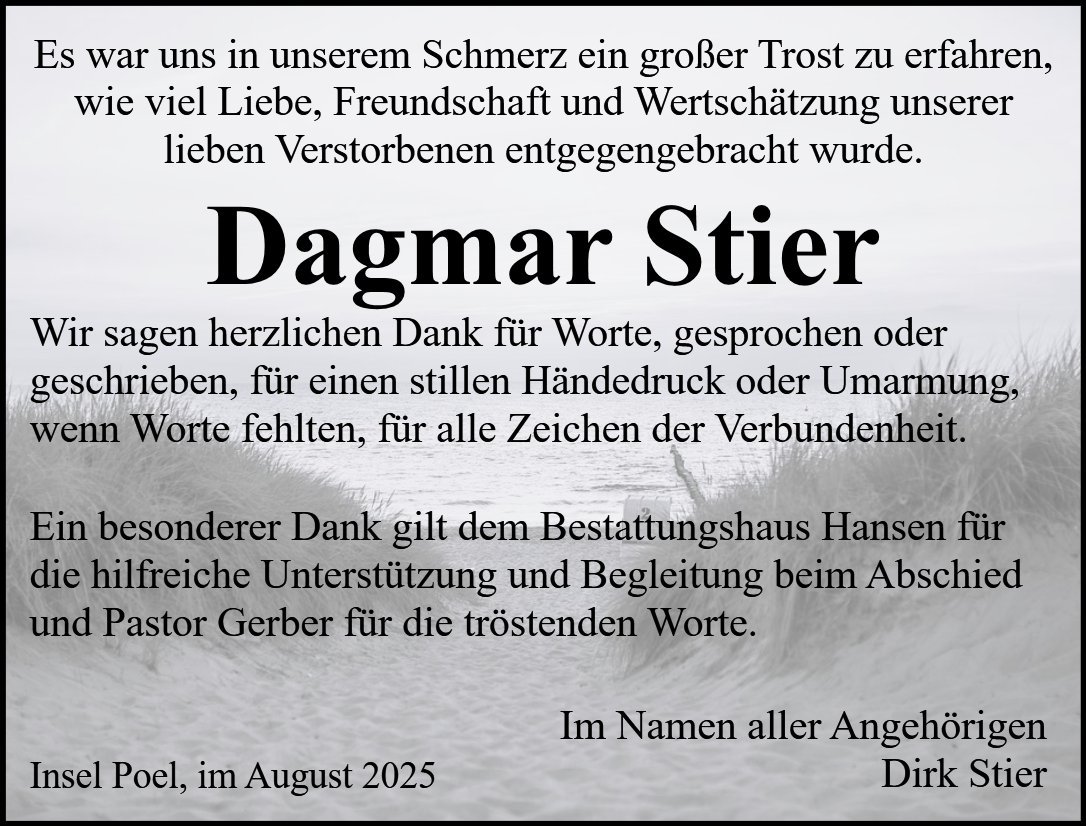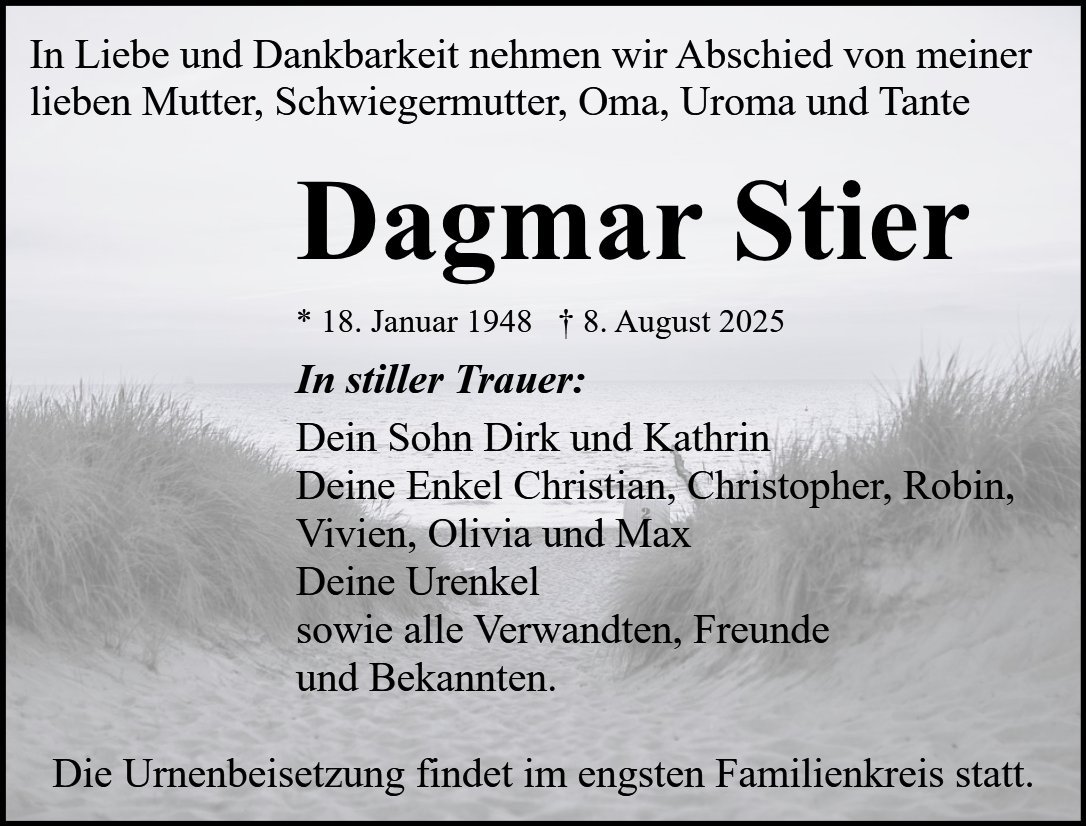 Dagmar Stiergestorben am 8. August 2025