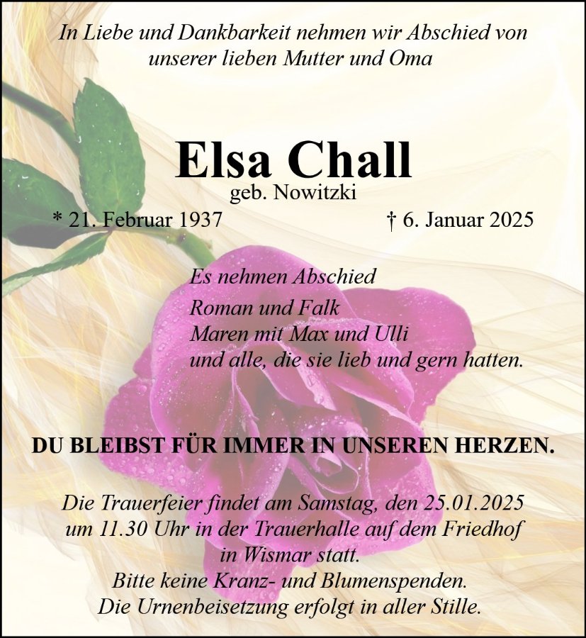 Elsa Challgestorben am 6. Januar 2025