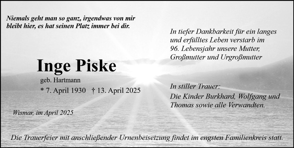 gestorben am 13. April 2025 in Benz OT Kalsow
